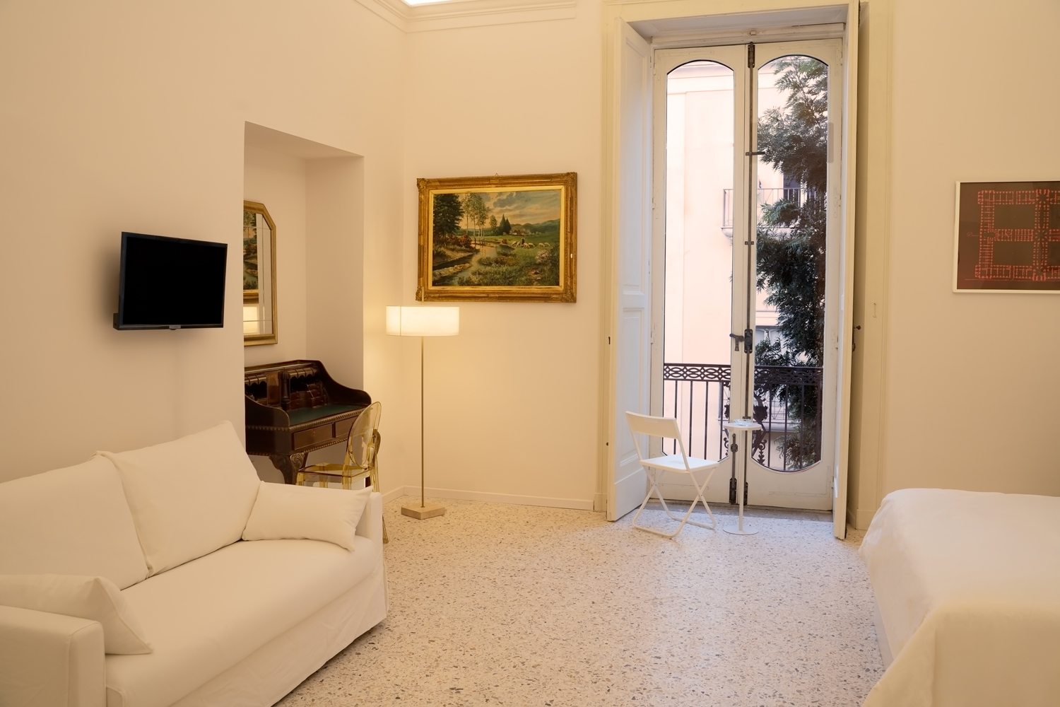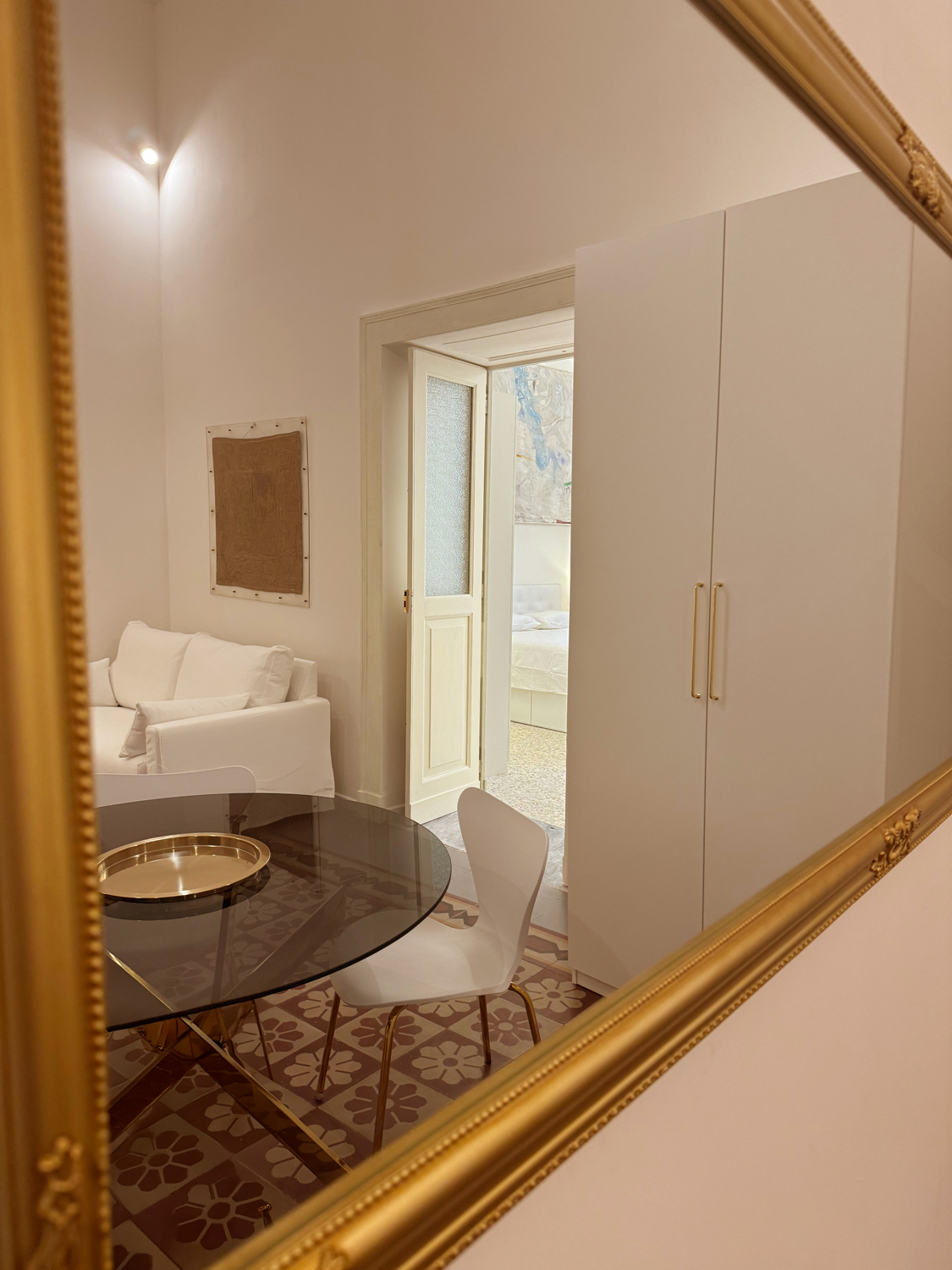 L’Appartamento Gold accoglie con un’atmosfera luminosa e armoniosa, dove ogni dettaglio è pensato per offrire comfort e serenità. Situato al secondo piano di una dimora storica, su un unico livello di 79 m², gli spazi si aprono in un abbraccio caloroso: luminosi angoli di conversazione, letti accoglienti e divani letto pronti ad ospitare momenti di relax o di condivisione.
