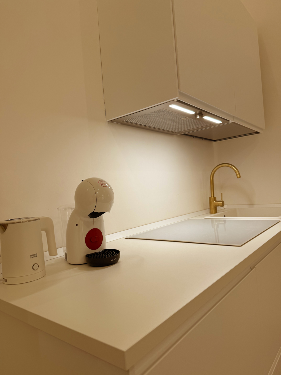 La cucina, moderna e completamente attrezzata con piano a induzione, bollitore e macchina per il caffè in capsule, si affaccia su una zona pranzo elegante, dove i pasti diventano un piccolo rito di convivialità. La zona giorno, ampia e luminosa, dispone di due divani letto, mentre la camera matrimoniale ospita un letto matrimoniale comodo e un divano letto, creando un angolo intimo e confortevole per il riposo e la quiete. Il bagno privato, luminoso e funzionale, completa l’alloggio con tutti i comfort necessari per un soggiorno senza pensieri.